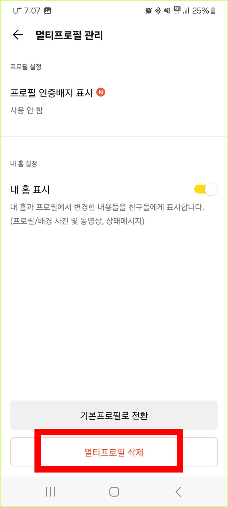 ■ 멀티프로필 관리 페이지로 넘어왔습니다. 아래에 있는 [멀티프로필 삭제]를 클릭해주세요.