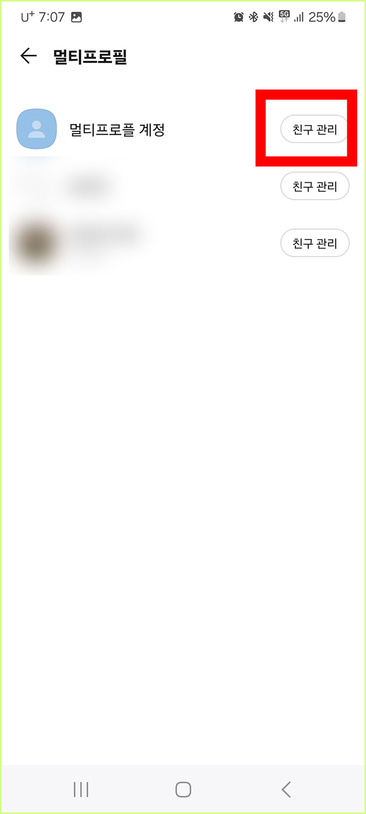 ■ 그 다음에는 그 멀티프로필 안에 분류할 친구, 지인을 넣어야 합니다. 아래에 있는 [친구관리]를 클릭해주세요.