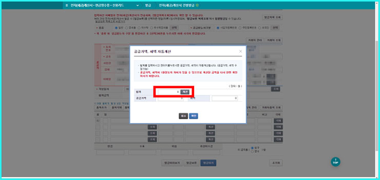 ■ [공금가액]의 경우에는 먼저 [계산]이라고 적혀 있는 버튼을 클릭해주세요.
