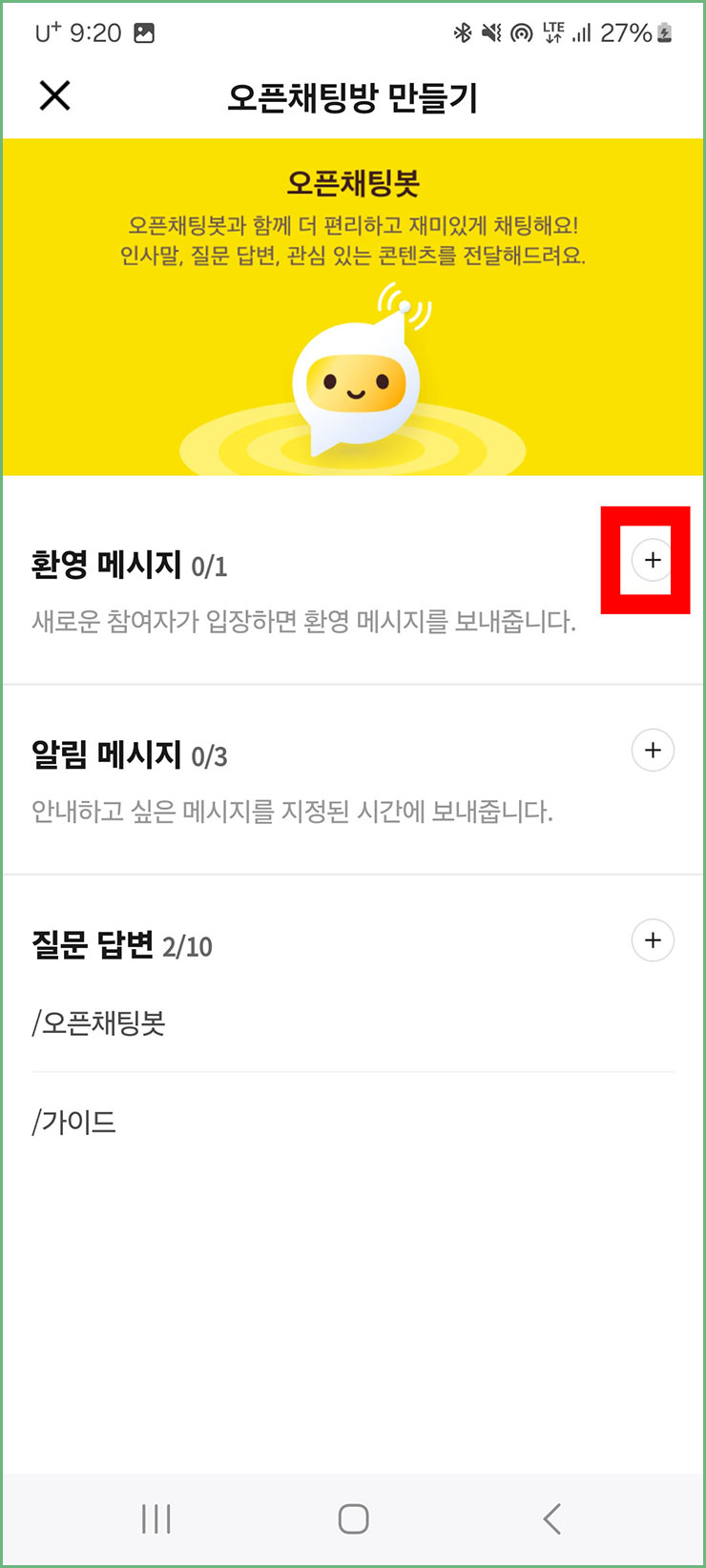 ■ 환영메시지 옆에 있는 [플러스] 아이콘을 클릭해주세요.