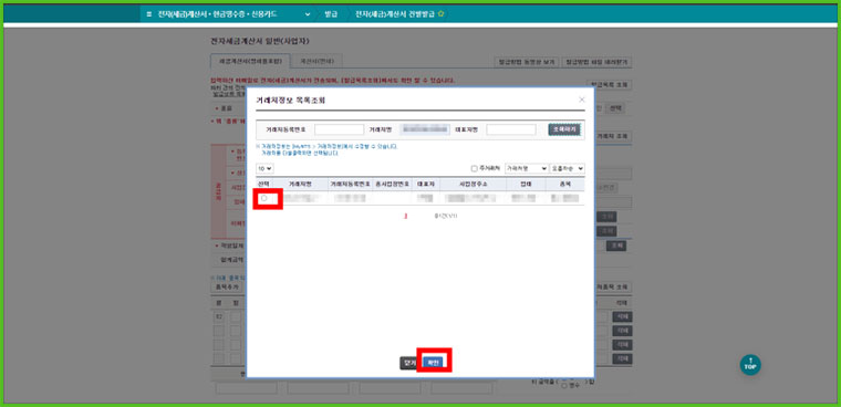 ■ 거래처를 찾았다면 <체크> 표시를 한 다음에 <확인>을 눌러주세요.