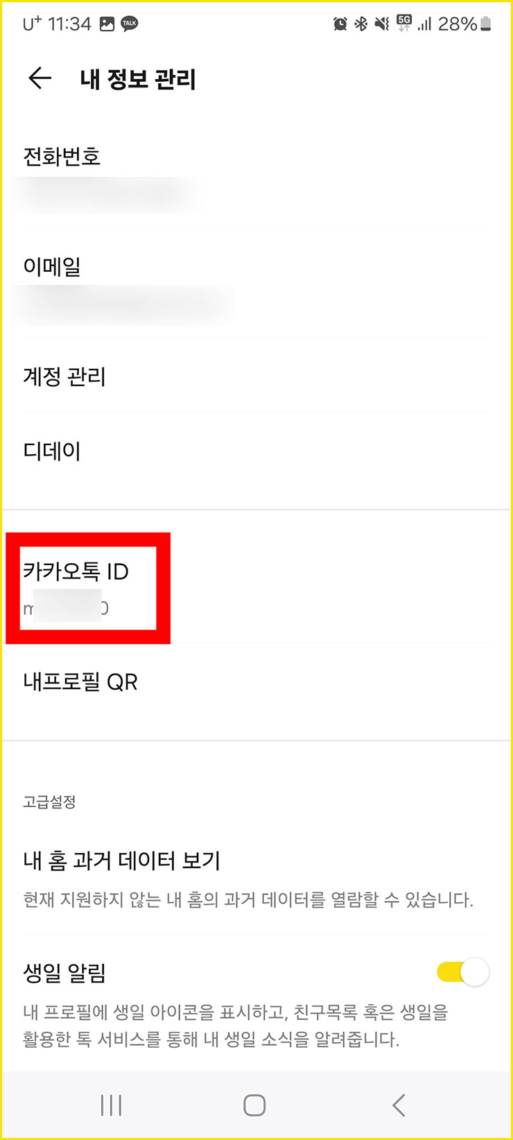 ■ 이미지에 [빨간색 박스]로 표시한 곳에 우리가 확인하고 싶은 카카오톡 아이디가 있습니다.