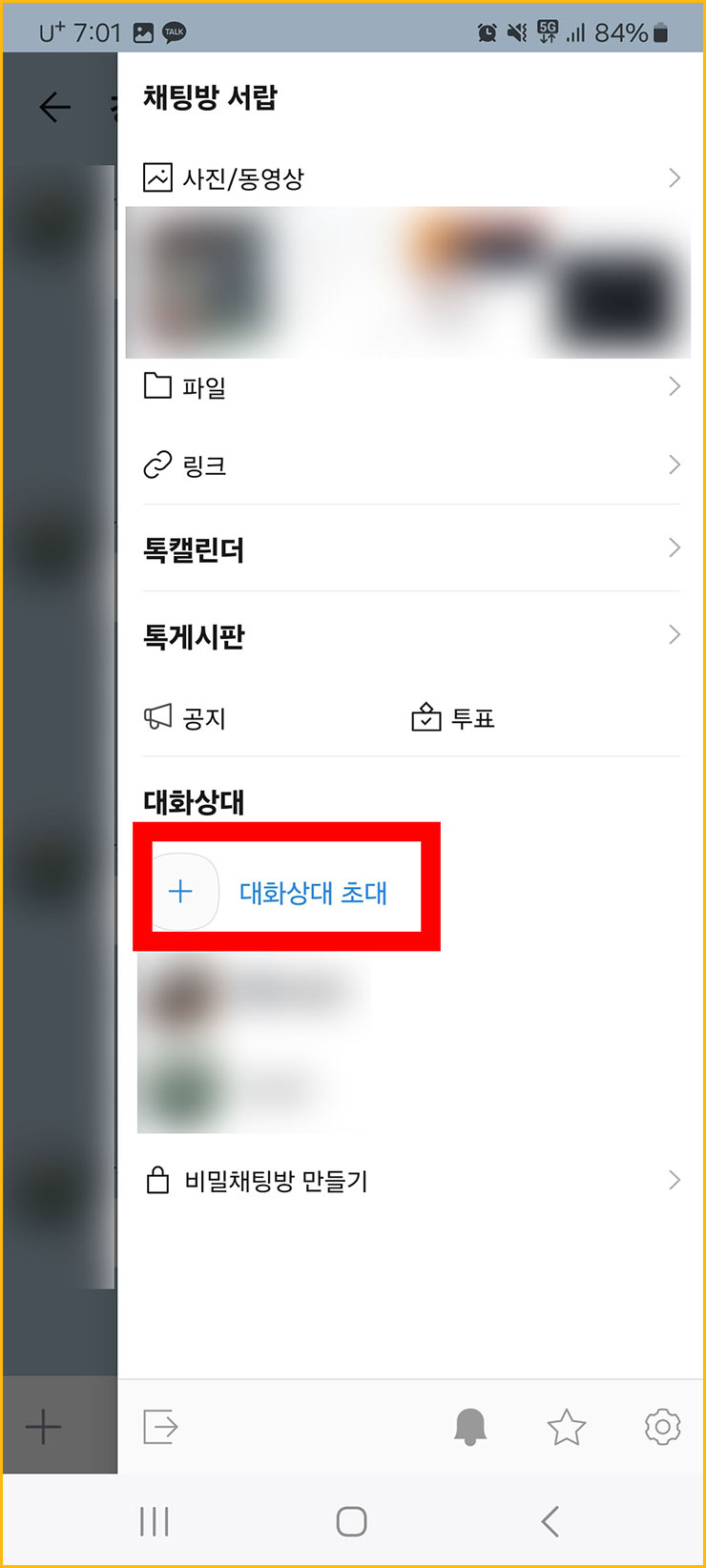 ■ 닫혀 있던 창이 열립니다. 그 상태에서 중간에 보면 [대화상대 초대]라는 텍스트가 있습니다. 해당 텍스트를 클릭해주세요.