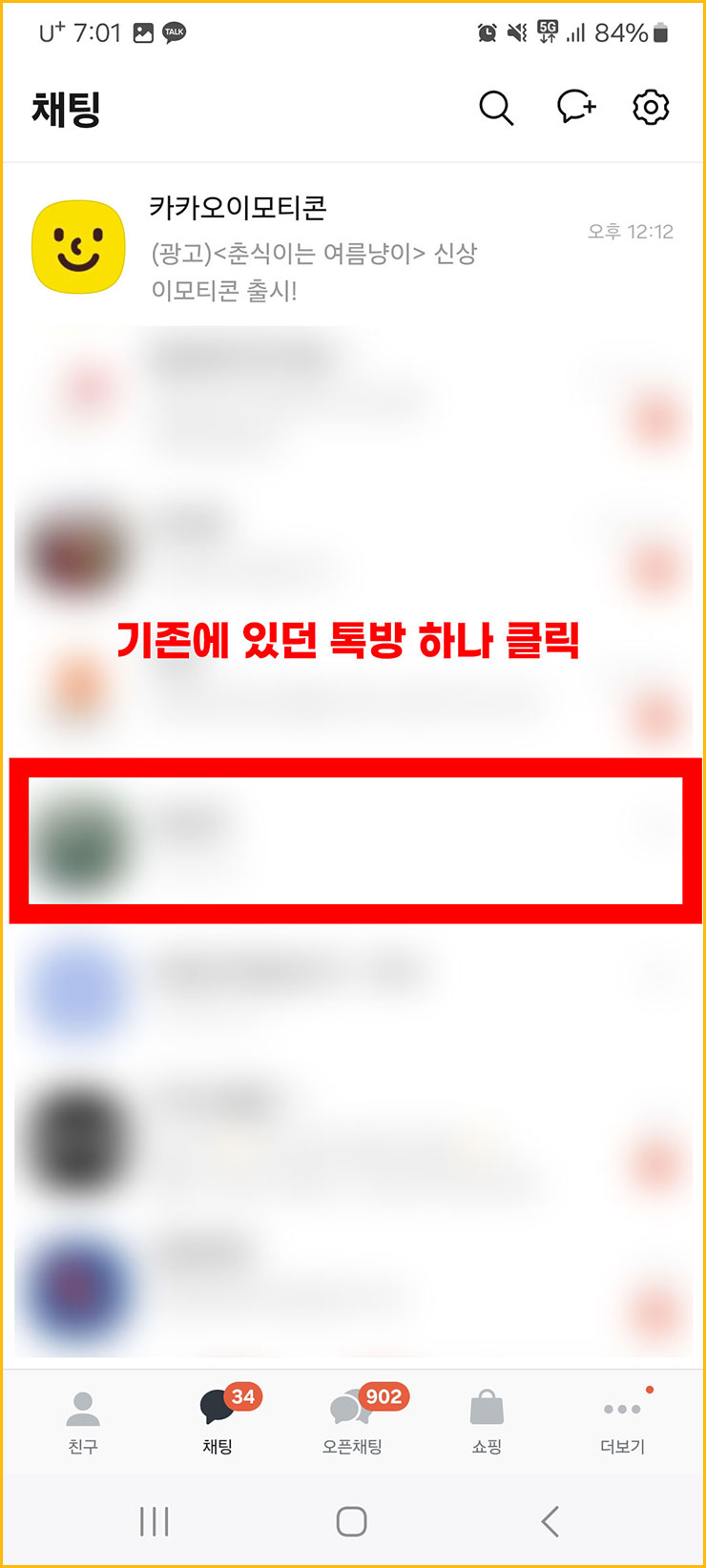 ■ 그 다음에는 [기존에 있던 방]을 하나 클릭해주세요. 만약에 기존에 있는 방이 없고 새롭게 만드셔야 하는 분들은 위에 링크를 걸어놓았습니다.