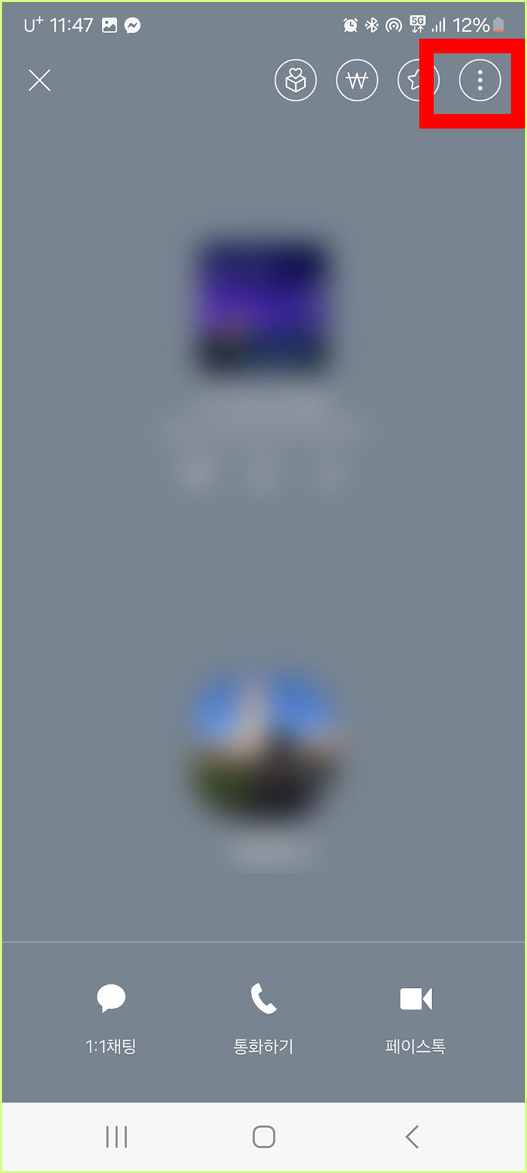 ■ 오른쪽 위에 점 3개가 보입니다. [점3개]를 클릭해주세요. 선물 아이콘 옆옆옆에 있습니다.