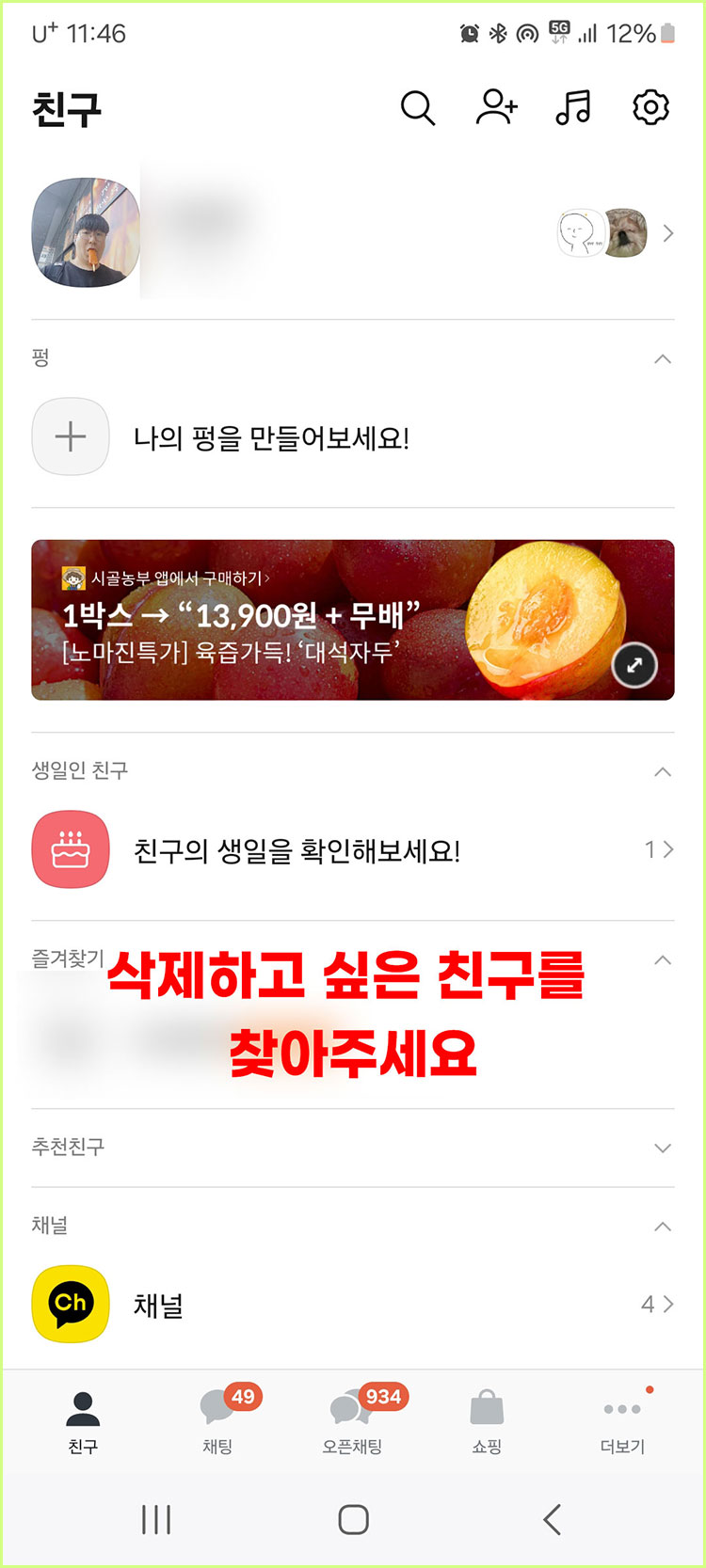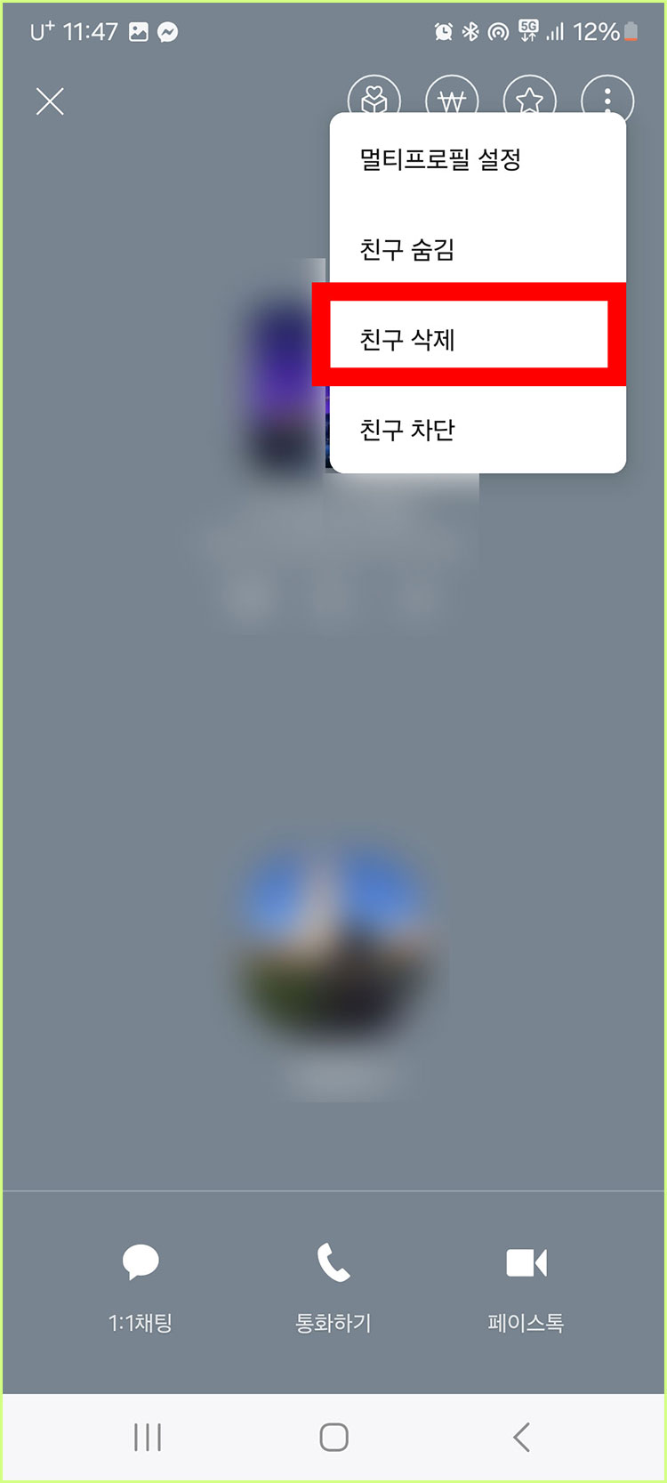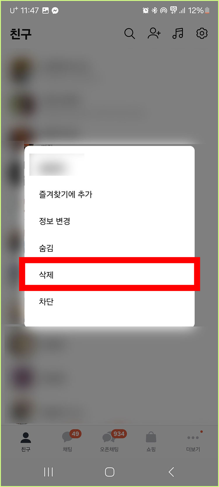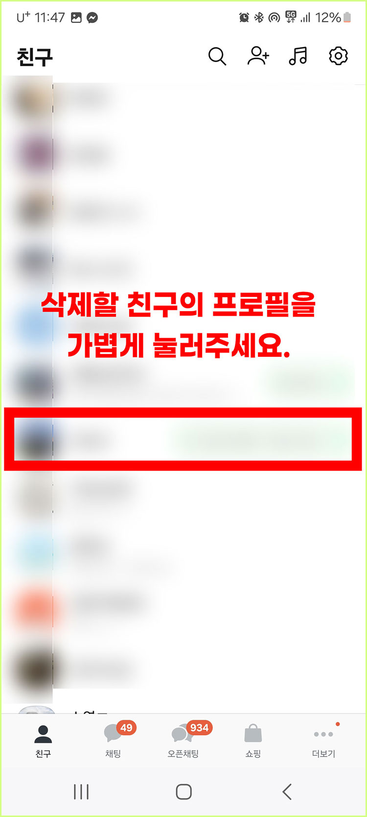 ■ 위와 똑같이 삭제할 친구를 이번에는 [가볍게] 클릭을 해주세요.