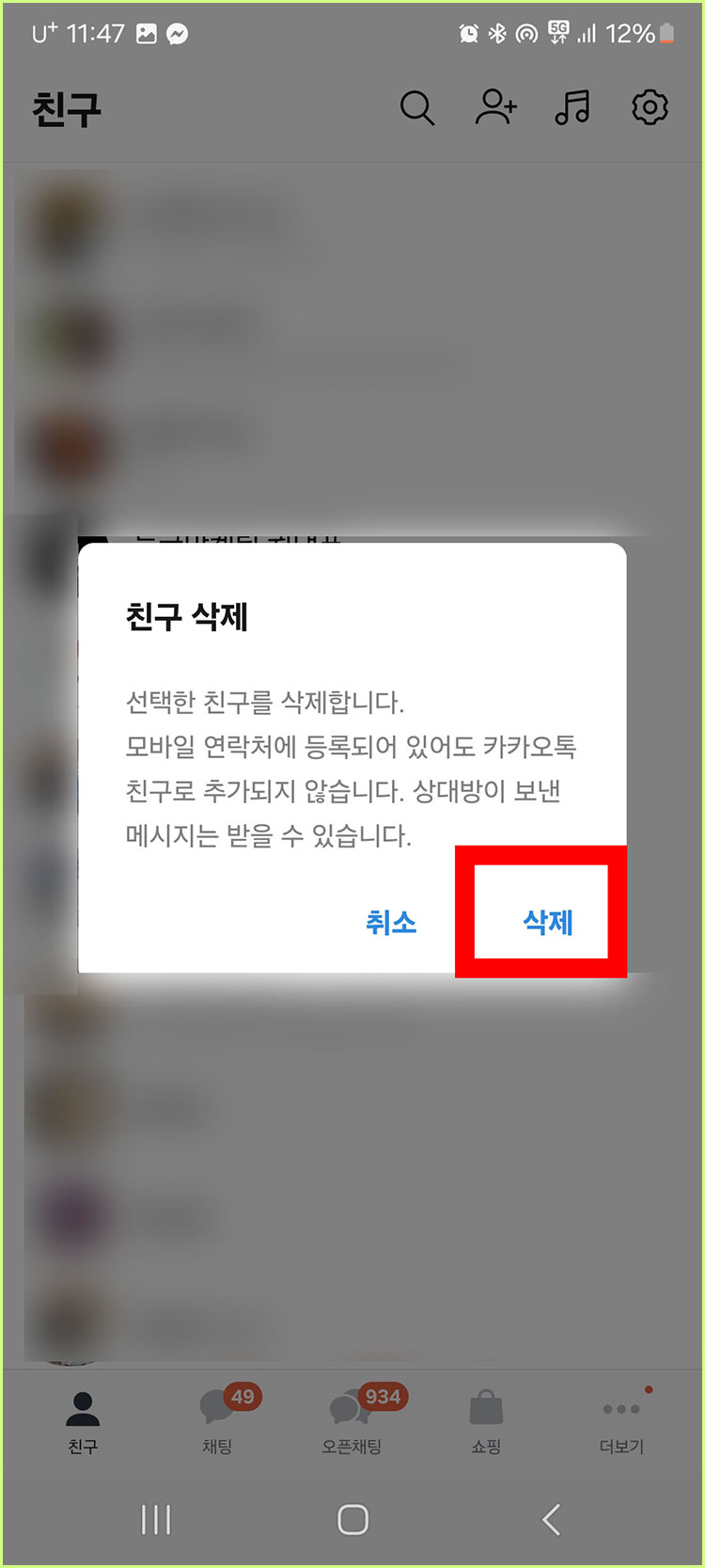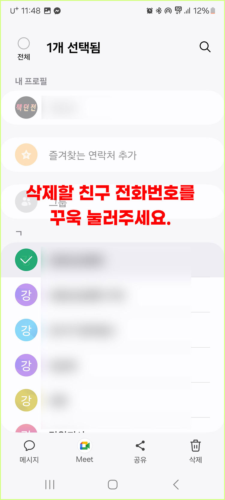 ■ [삭제할 친구 전화번호]를 [꾸욱] 눌러주세요.