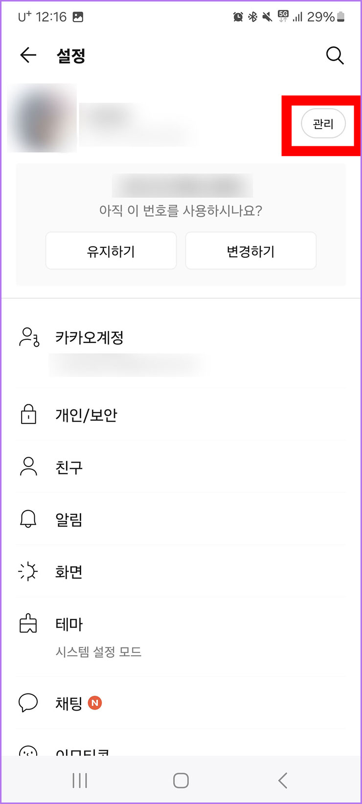■ 설정 페이지에서 오른쪽에 있는 [관리]를 클릭해주세요.