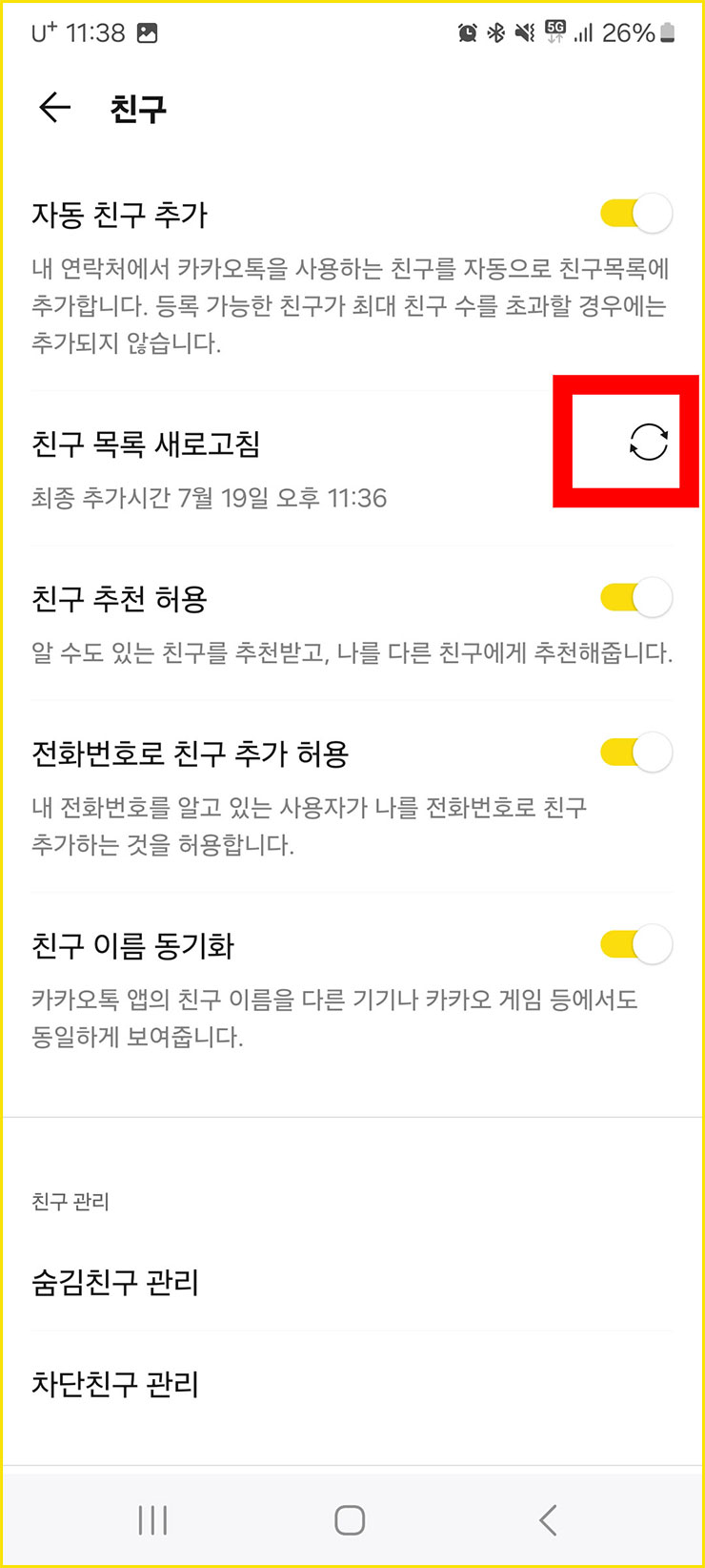 ■ 그리고 [친구 목록 새로고침]을 클릭해주세요.