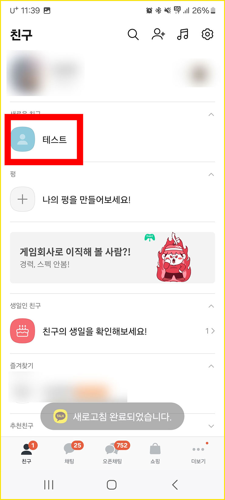 ■ 그리고 [친구 목록 새로고침]을 클릭해주세요.