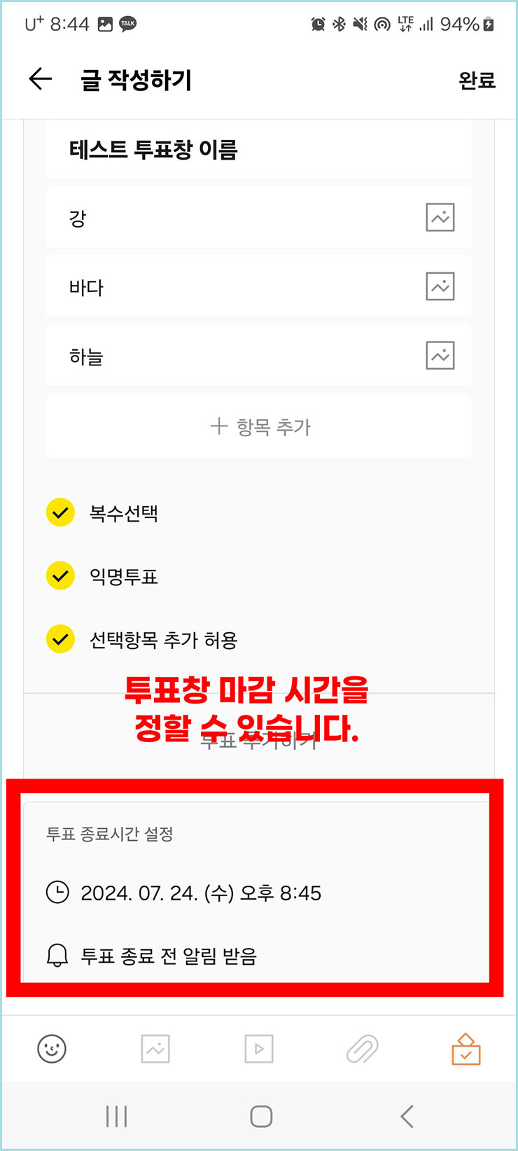 ■ [마감시간]을 정해주세요. 개인적인 의견으로는 마감 시간을 정해두었을 때가 훨씬 사람들의 참여도가 높았던 거 같습니다.