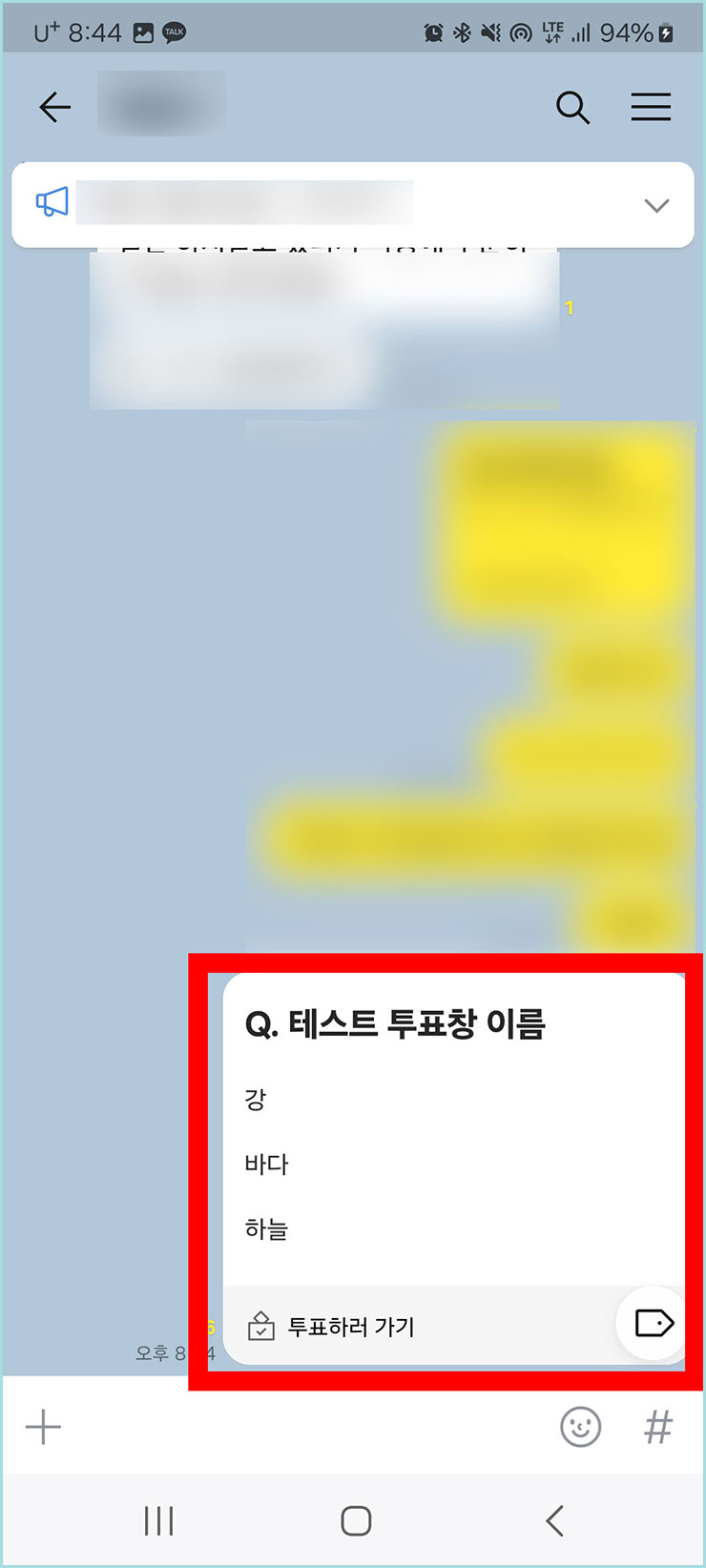 ■ 여러분들의 단체톡에 투표창이 올라옵니다. 여기까지 되었으면 카카오톡 투표 만들기가 모두 완료되었습니다. 이 상태에서 여러분들께서 마감시간을 정해두셨다면 시간이 지나면 마감시간에 맞춰서 최종 결과가 나옵니다.