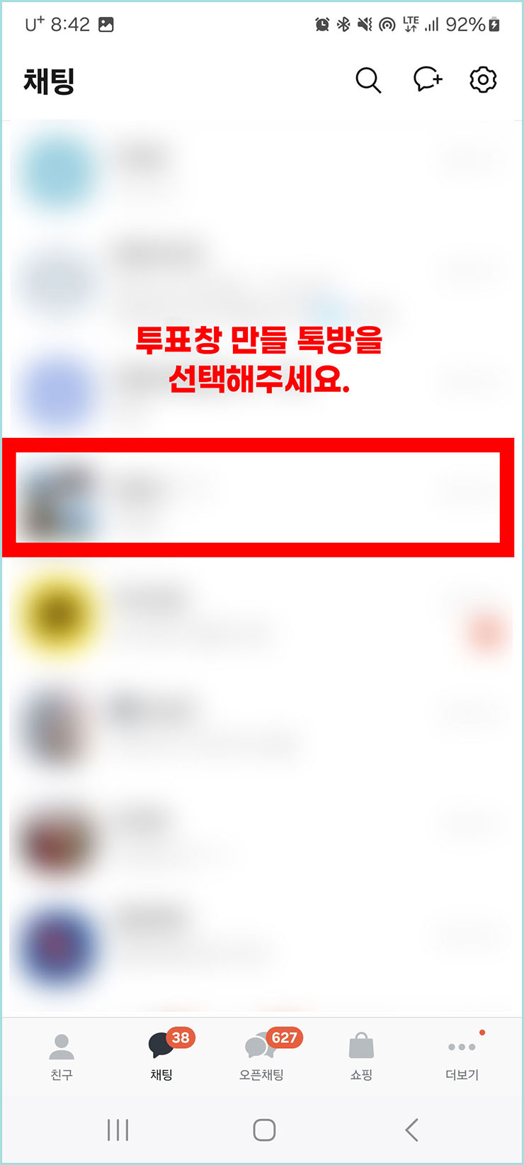 ■ 먼저 [투표창을 만들 톡방] 하나를 클릭해주세요. 저 역시 하나의 톡방을 클릭해서 들어가보았습니다.