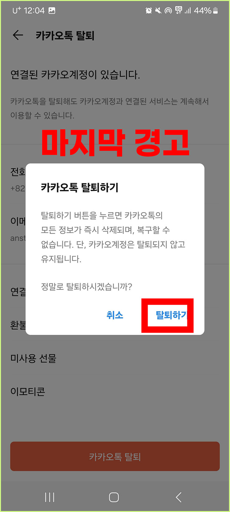 ■ 한 번 더 여러분들께 카톡 계정 탈퇴를 할 건지를 물어봅니다. 앞으로 한 번만 더 하면 끝이 납니다.