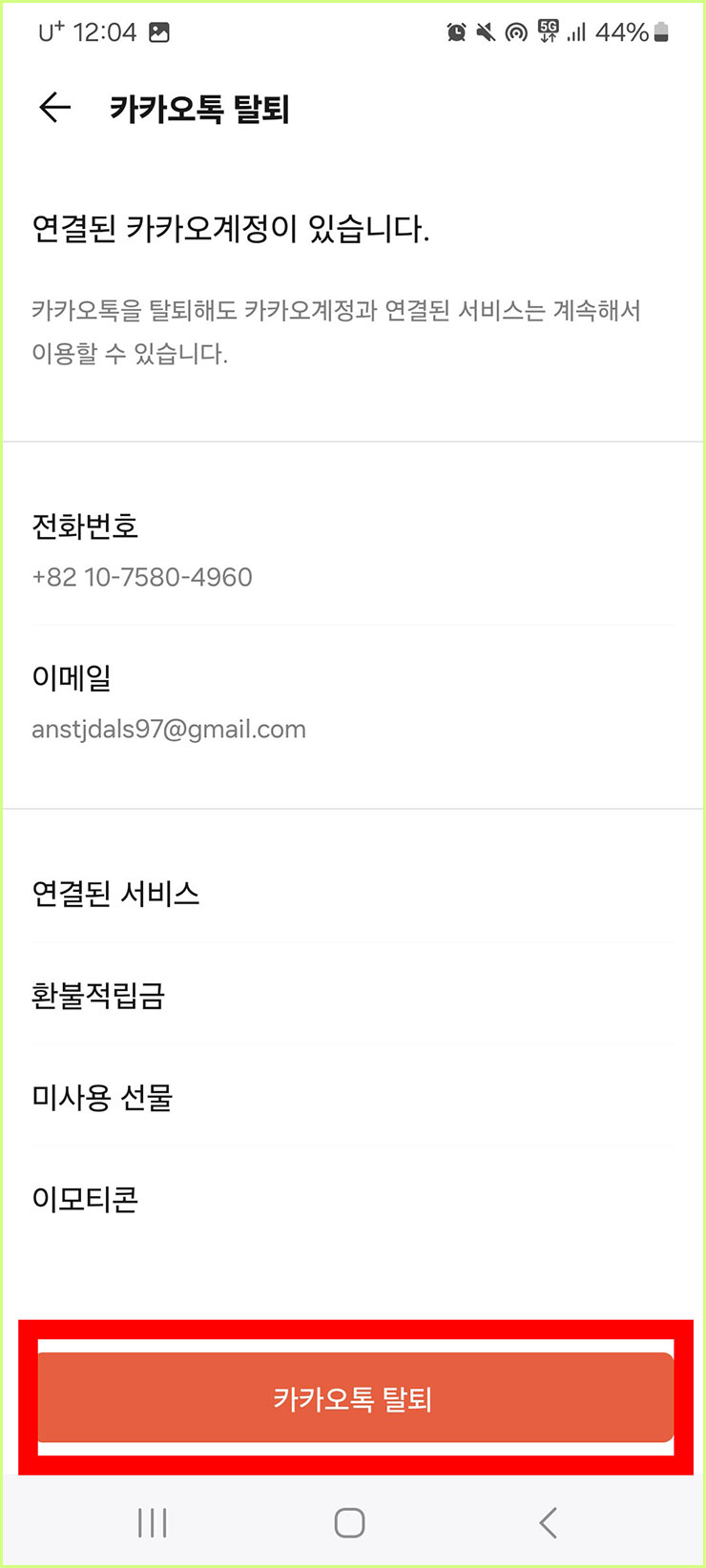 04. 카톡 계정 탈퇴 진행하기