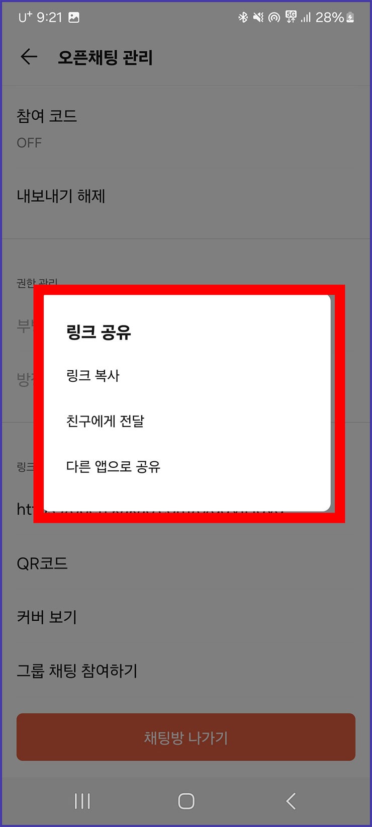 ■ 아래로 내리면 오픈채팅방의 URL 링크 및 QR코드를 볼 수 있습니다. [링크와 QR코드]를 꾸욱 눌러주세요.