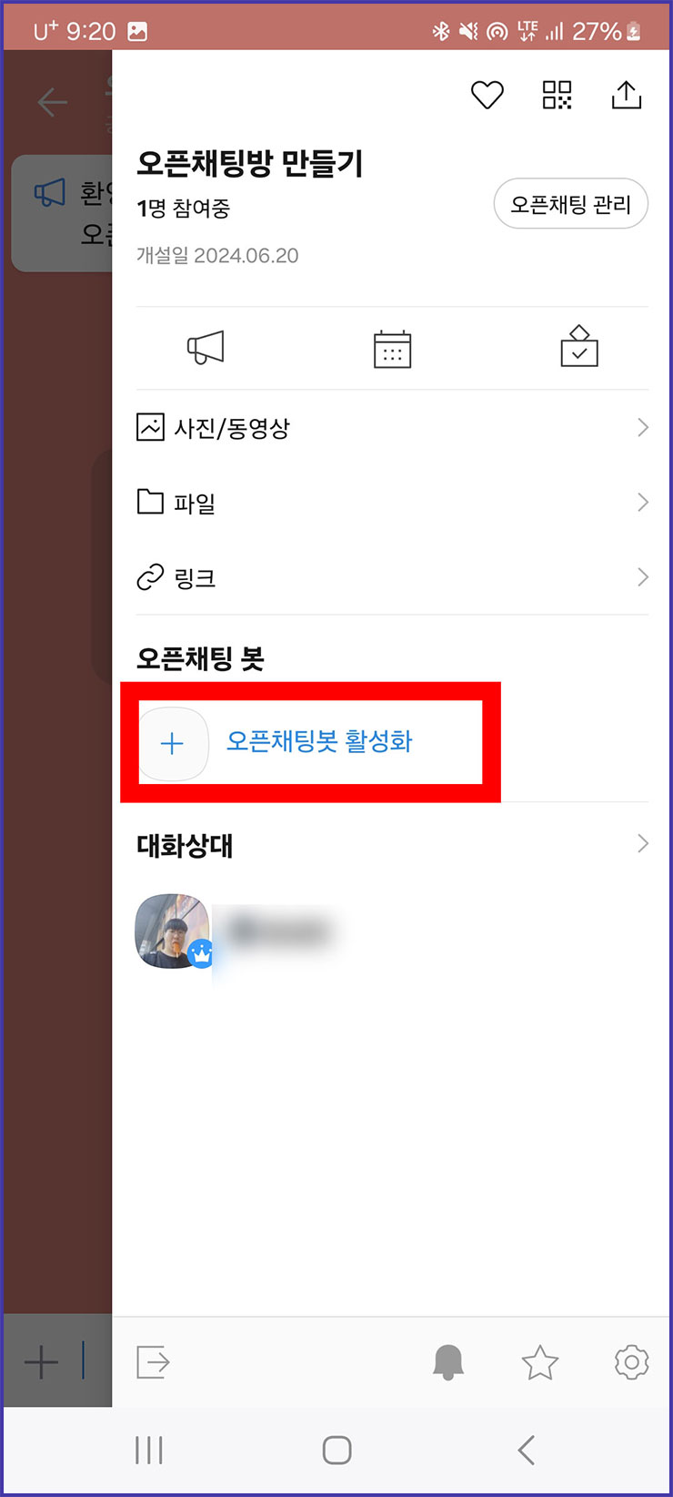 카톡 오픈채팅봇 활성화하는 방법, 사용하기