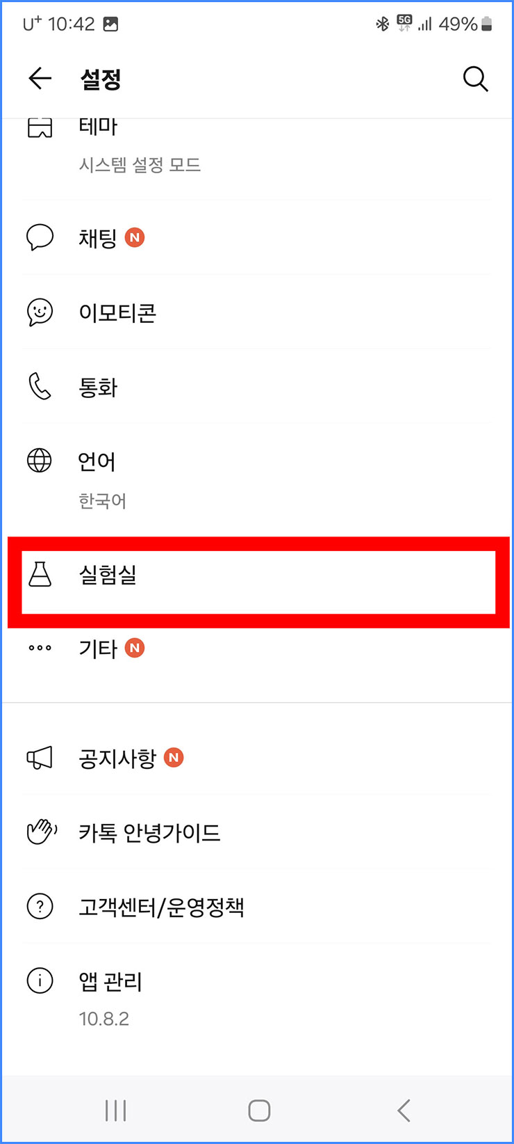 ■ 실험실이라는 텍스트가 보입니다. [실험실]을 클릭해주세요.