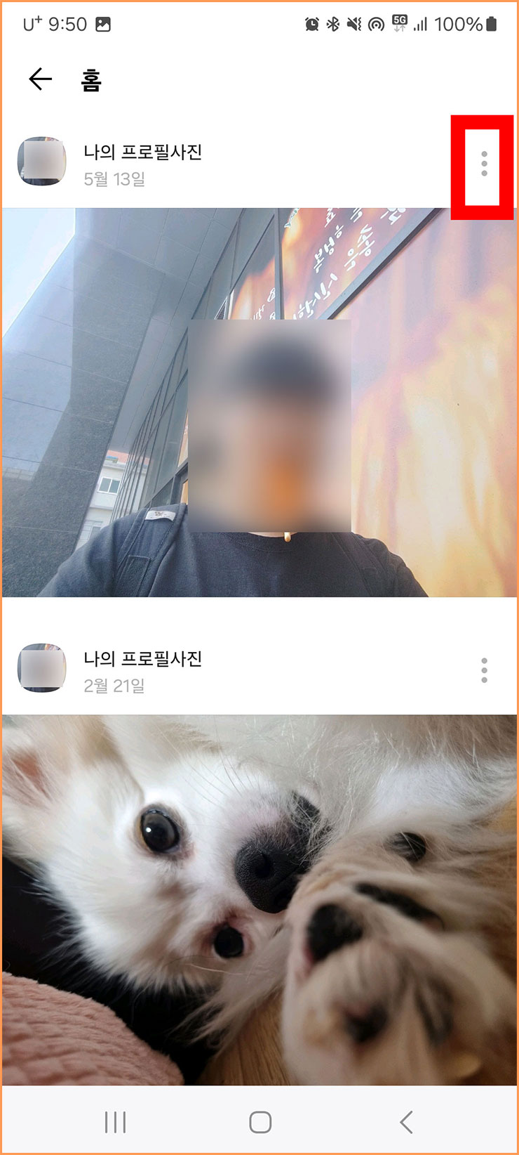 ■ [다른 사진 위에 있는 점3개]를 클릭해주세요. 저는 여러분들의 이해를 돕기 위해서 제 강아지 사진 위에 있는 점3개를 클릭했습니다.