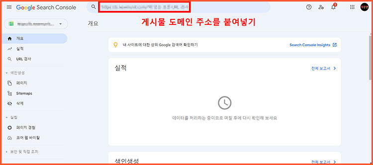 ■ [Google 색인에서 데이터 가져오는 중]이라는 안내창이 나옵니다. 잠시 기다려주세요.