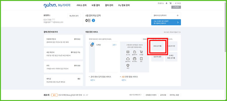 ■ 먼저 <gabia 공식 홈페이지>로 들어가주세요. 저는 gabia에서 메인 도메인을 사서 2차 도메인으로 연결을 하였습니다.